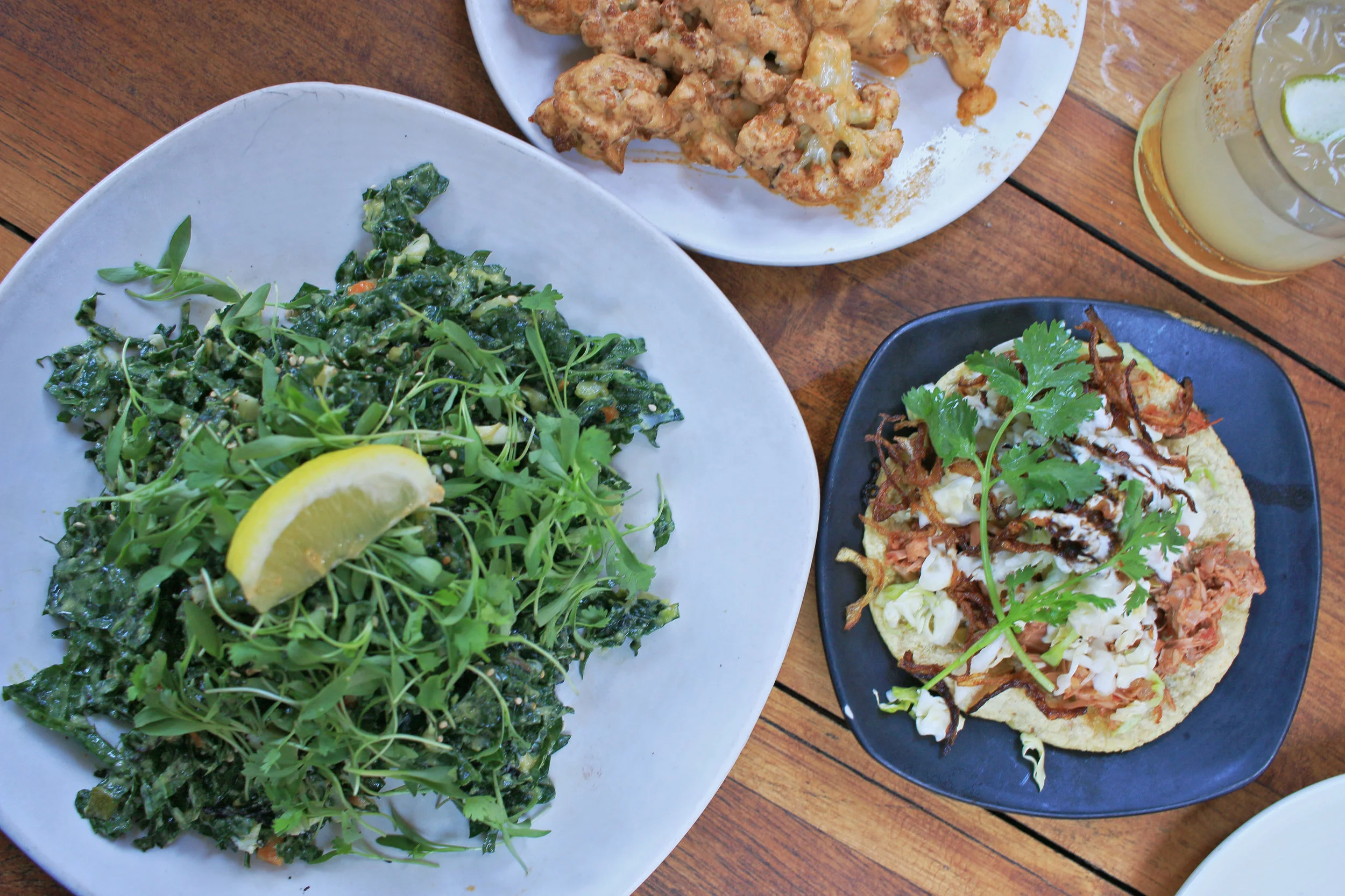 I selected their margarita for my drink and nacho cheese cauliflower and their jackfruit carnitas taco. My friend ordered a kale salad and we shared everything it was the perfect amount of food for lunch. The ambiance of the restaurant was so fun with upbeat music playing and the chatters of people having a great time over delicious food and company. They had a bar outside and I can see this place being a fun spot to grab a drink with friends for a night out. There was also a fireplace outside which would be a nice touch on the colder times of year. The service was fantastic and our waitress helped me decide on what items are the most popular and liked.