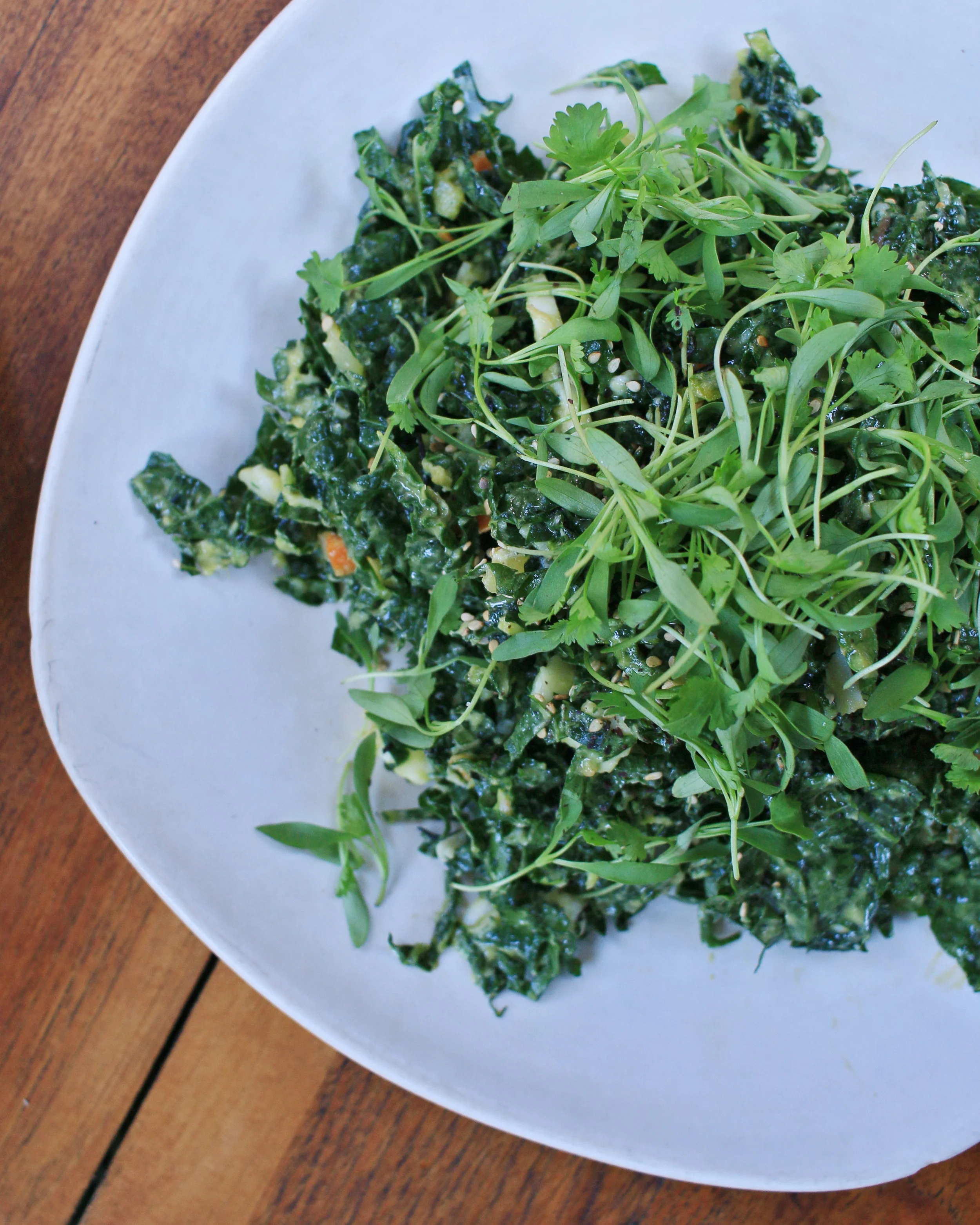 Ensalada del Mar: sea vegetables, kale, tahini, hearts of palm, fresh herbs, coconut, avocado