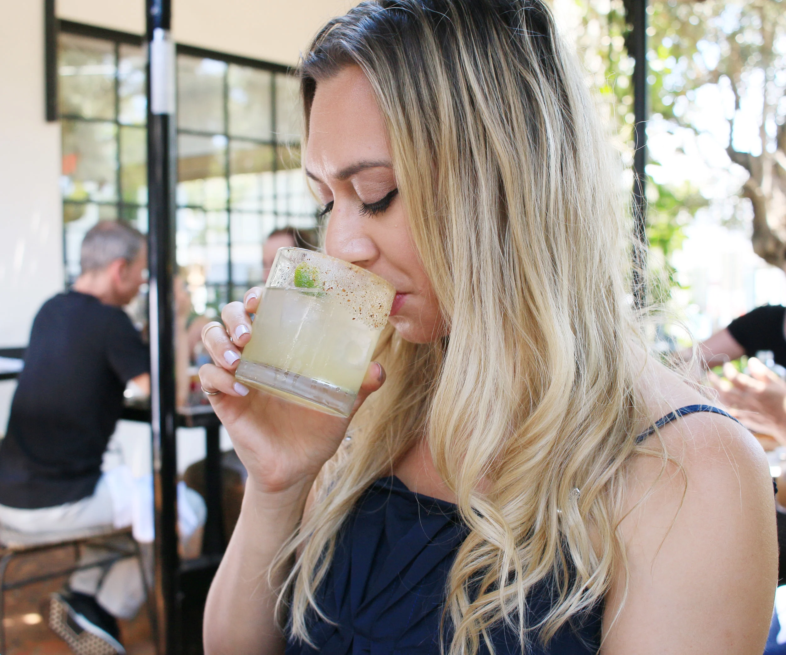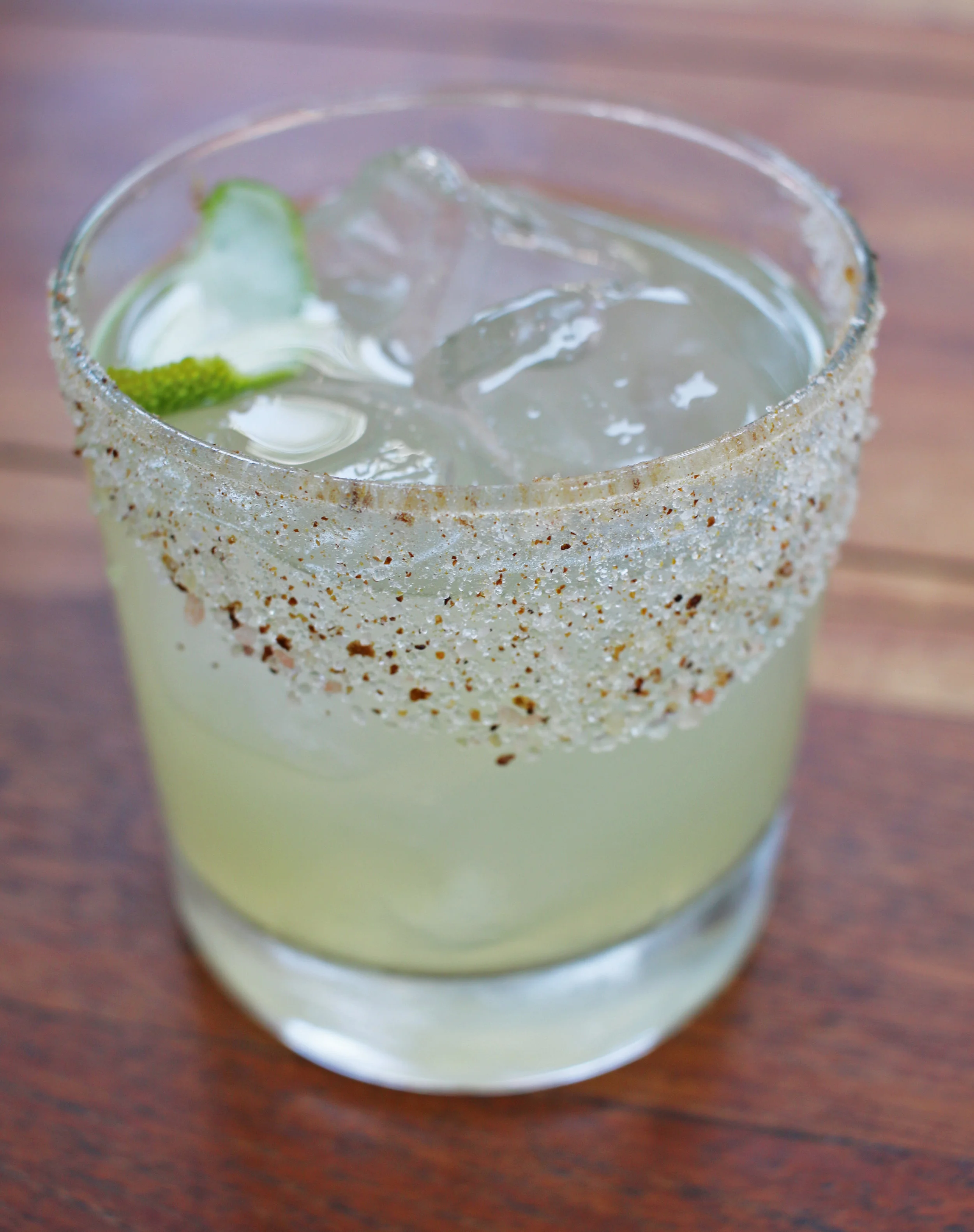 Purista Margarita: tequila reposado, agave, lime, orange bitters, sweet citrus salt rim